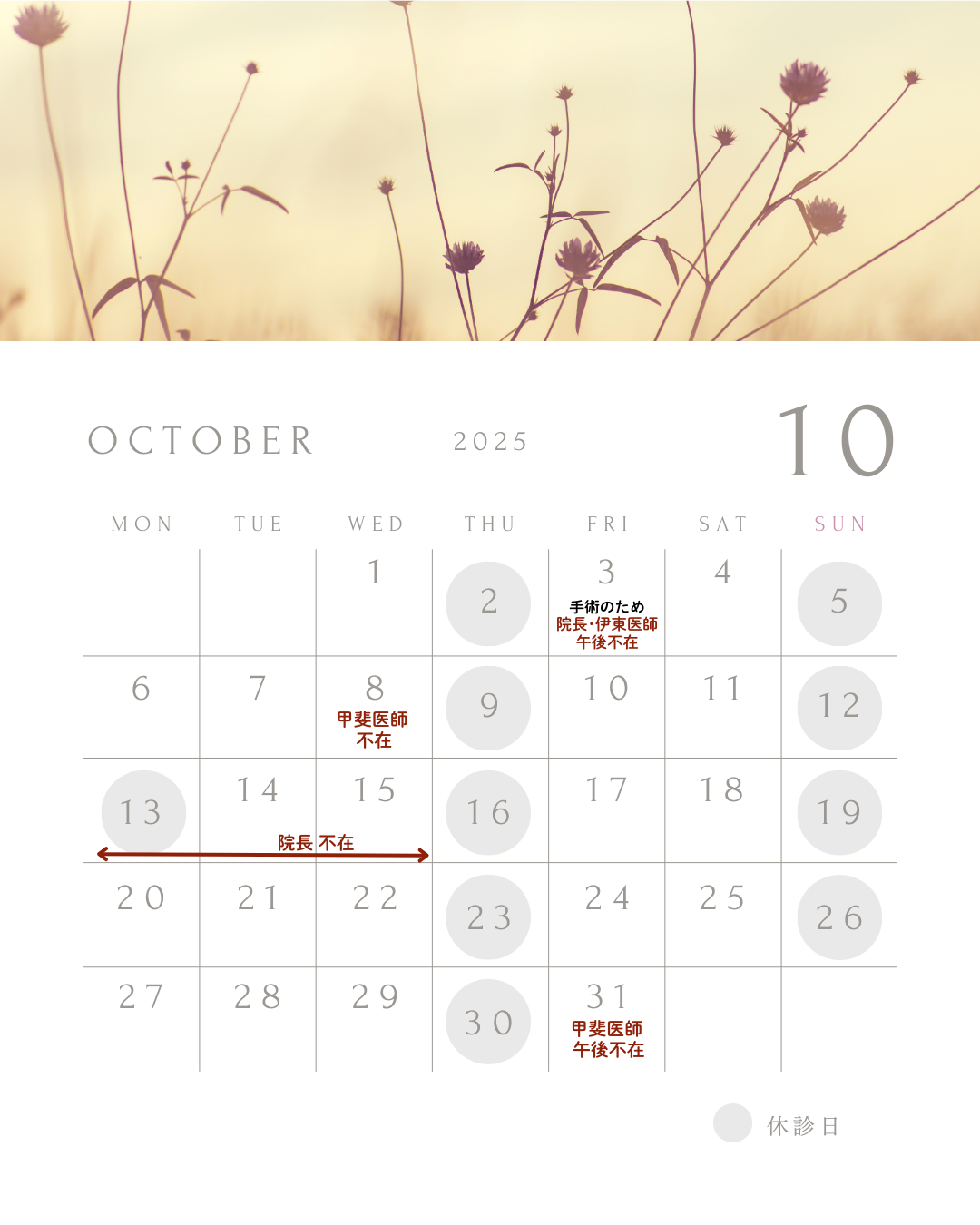※学会等で予定が変更になることがありますので、診療予定をご確認ください。